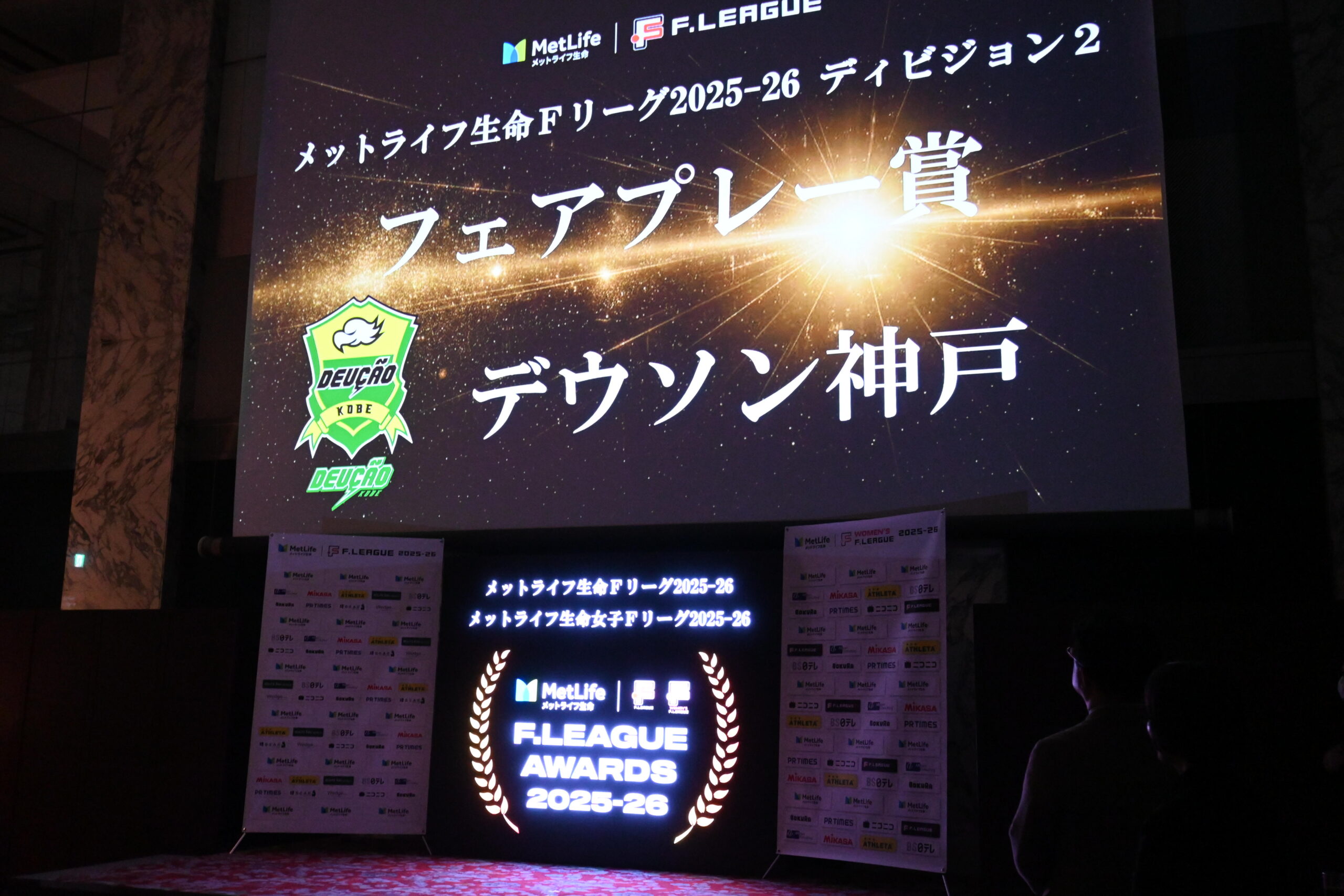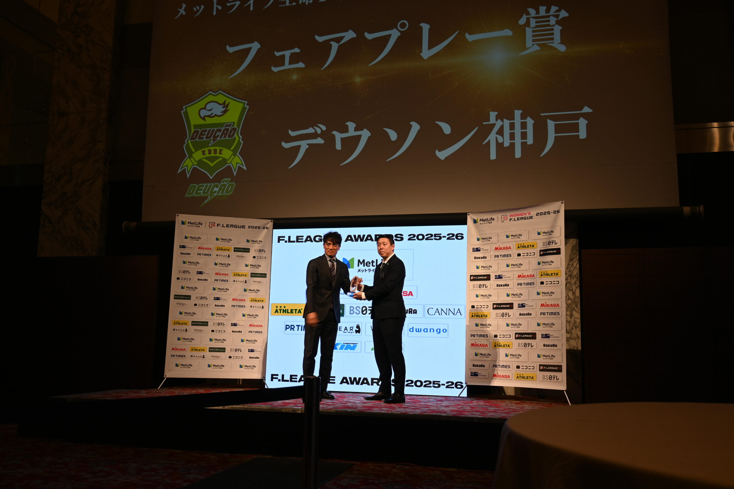 2026年3月5日(木)、ザ・プリンス パークタワー東京にて開催されましたシーズン表彰『F.LEAGUE AWARDS 2025-26』において、デウソン神戸が「フェアプレー賞」を受賞いたしました。