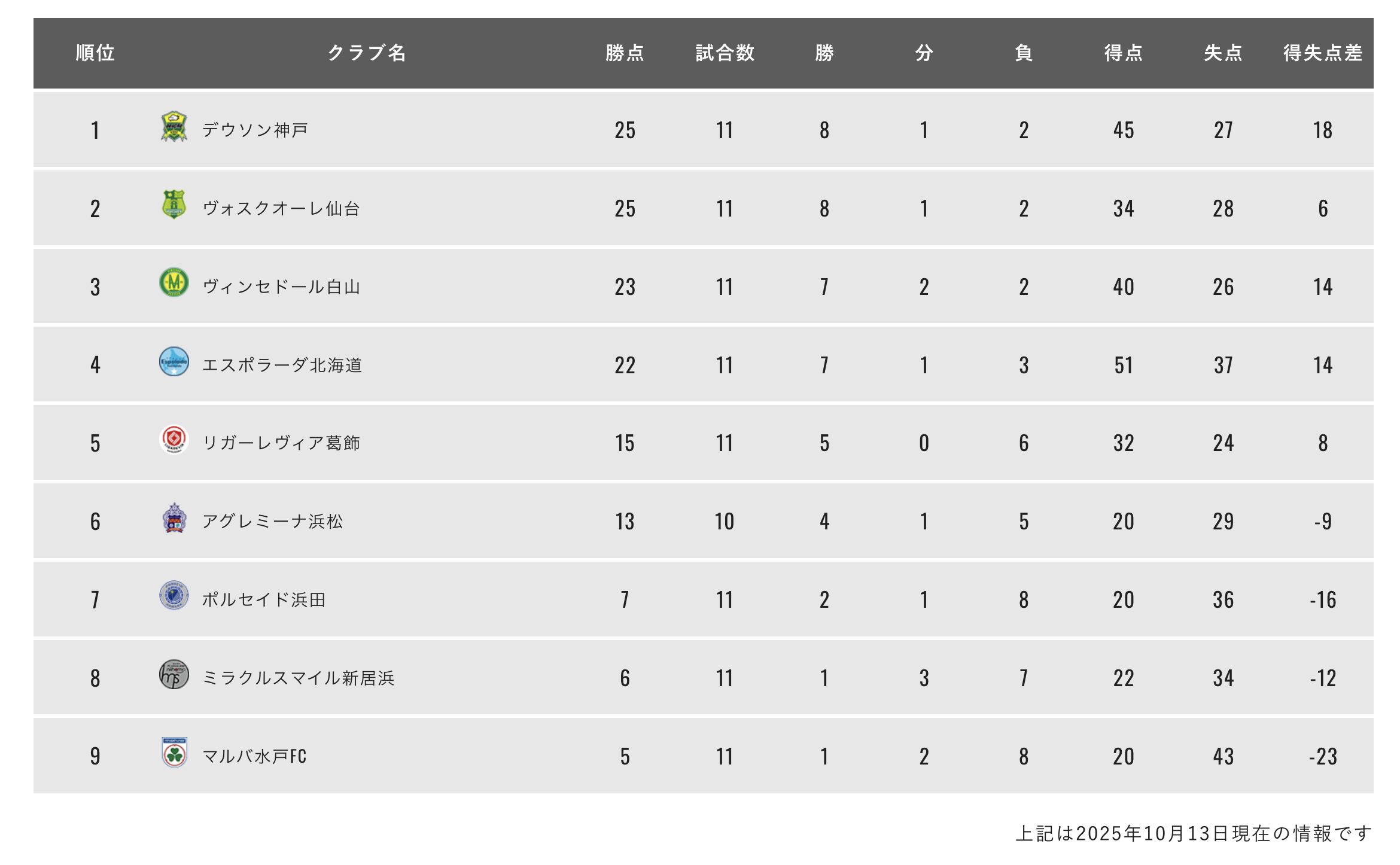 9/28 | デウソン神戸 | 4-3 | マルバ水戸FC | 14:00 | 加古川市立総合体育館 |