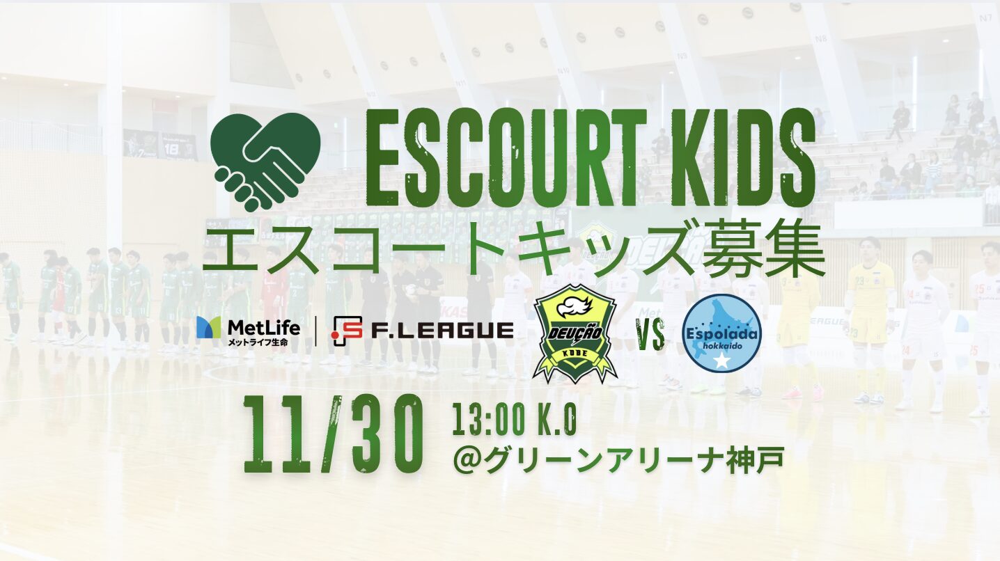 11月30日(土)デウソン神戸のメットライフ生命FリーグDiv2のホームゲーム「デウソン神戸vsエスポラーダ北海道」戦でエスコートキッズを募集いたします。