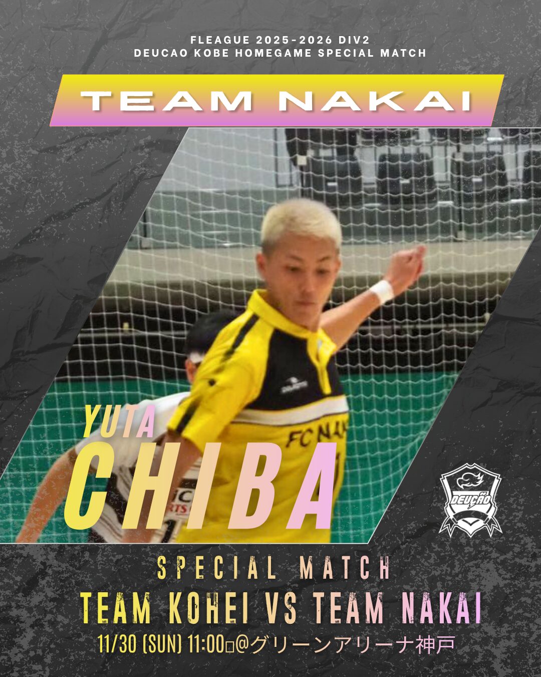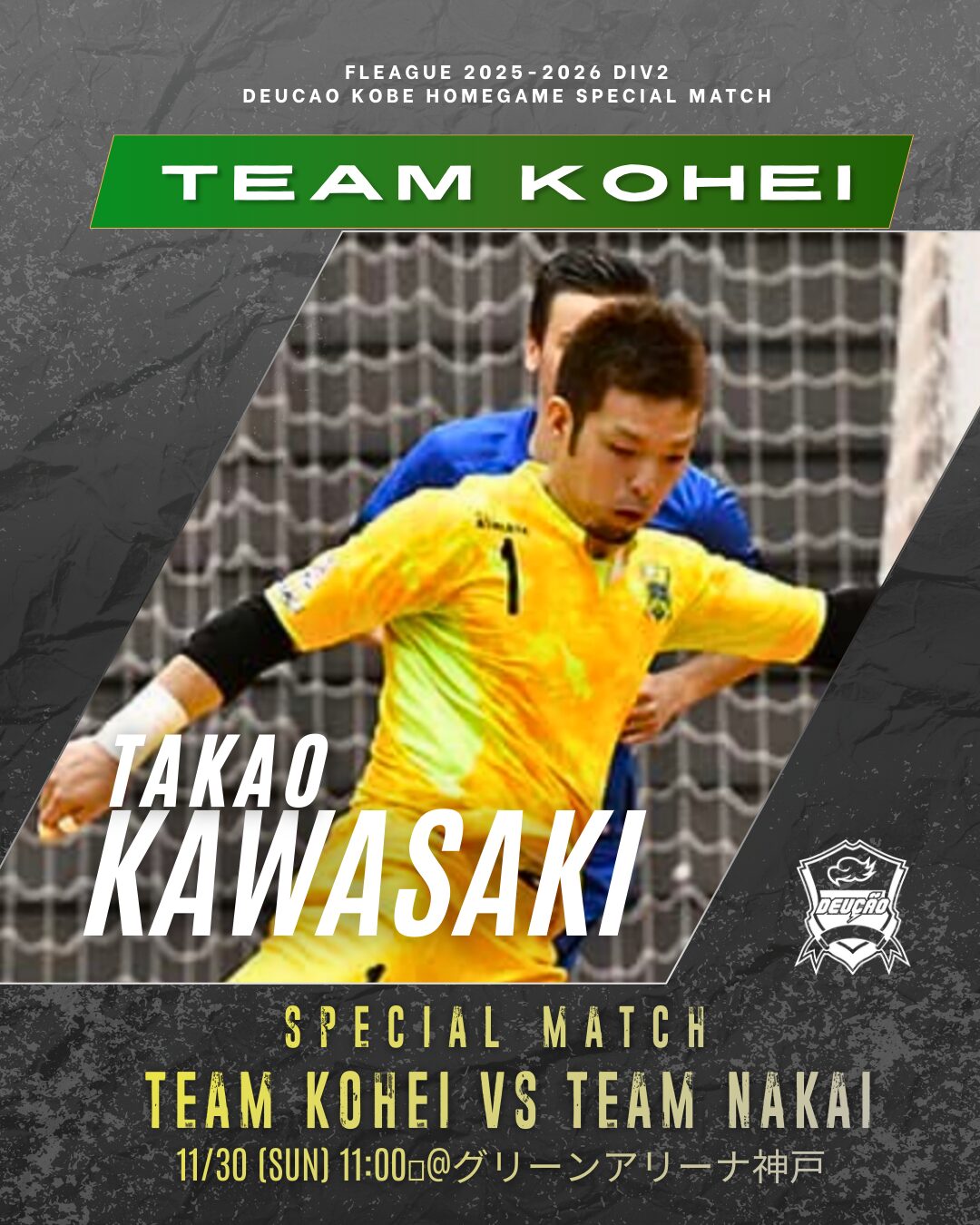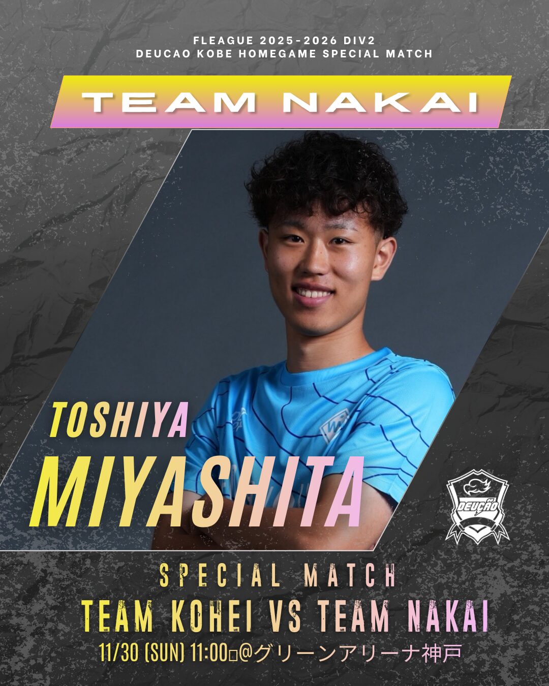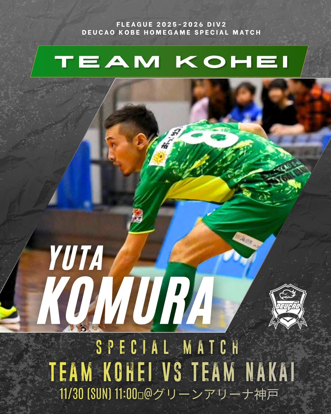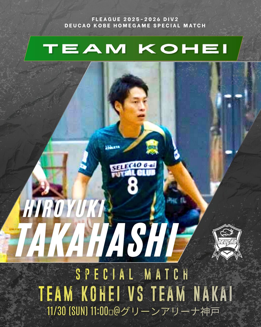 11月30日(日)デウソン神戸のメットライフ生命Fリーグ2025-26Div2「デウソン神戸vsエスポラーダ北海道」の試合前イベントとして、 スペシャルマッチ「チーム原田浩平×チーム中井健介」を開催いたします。