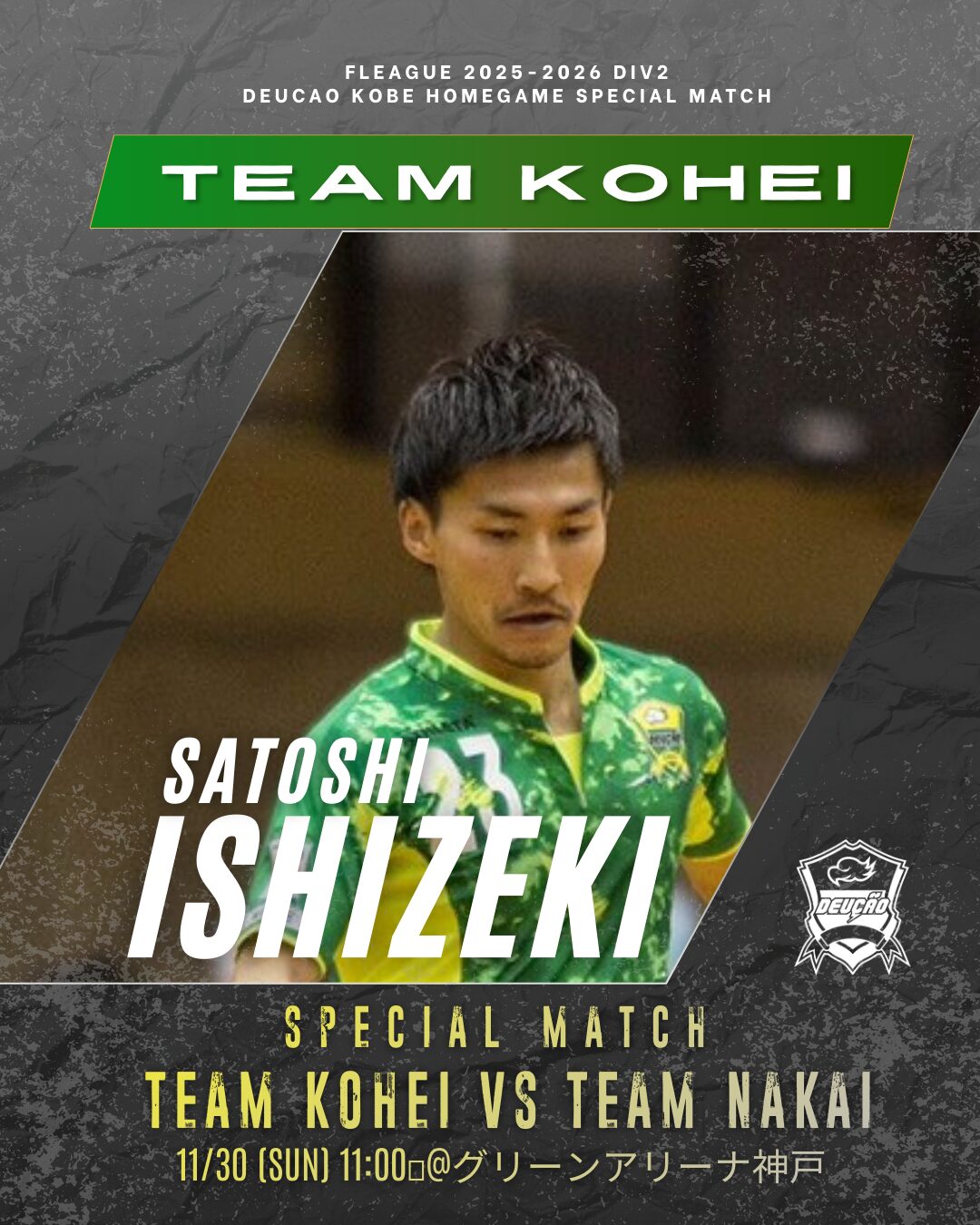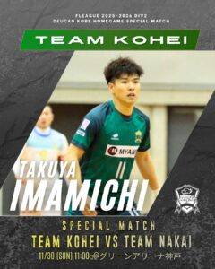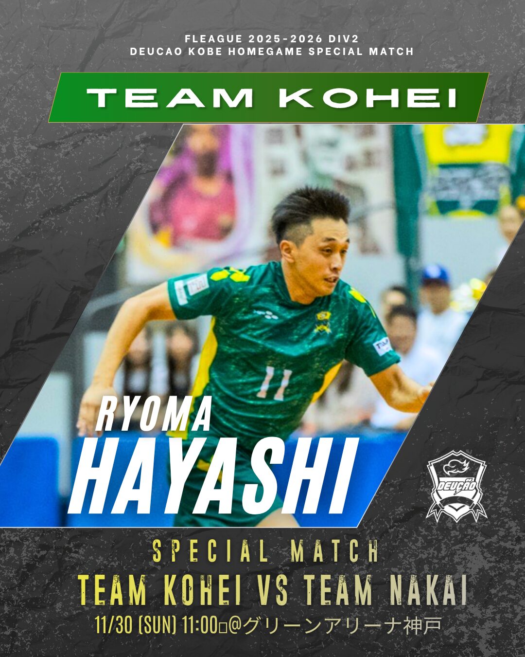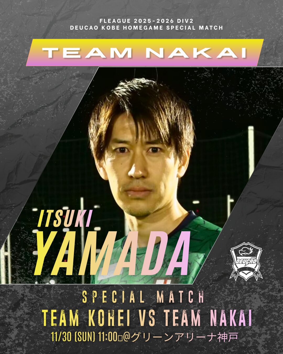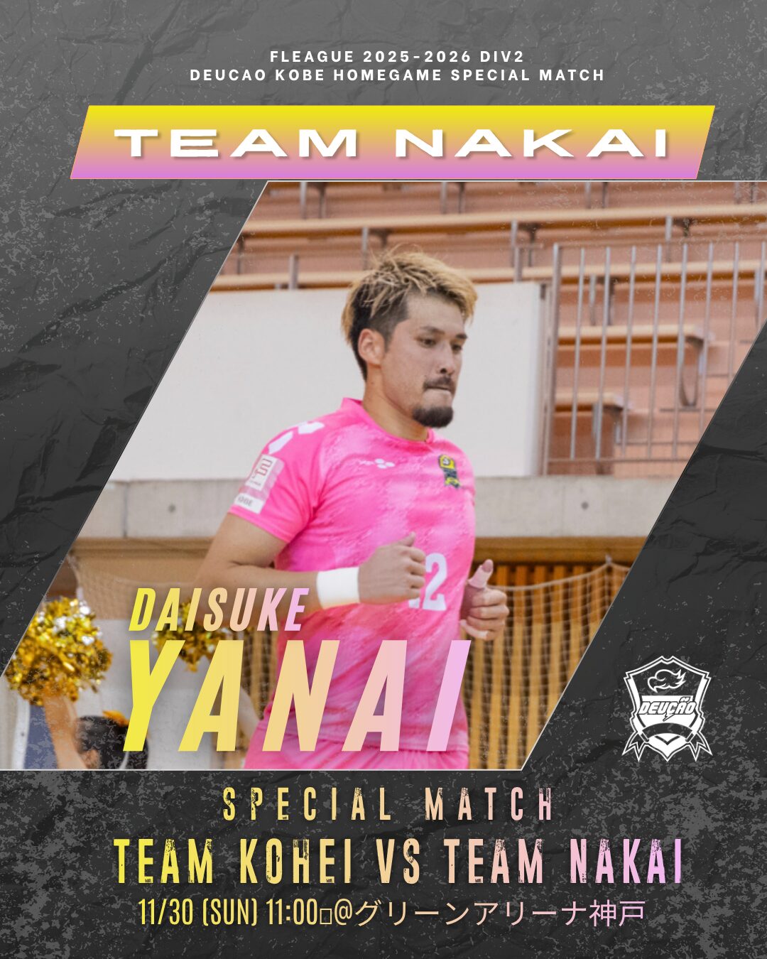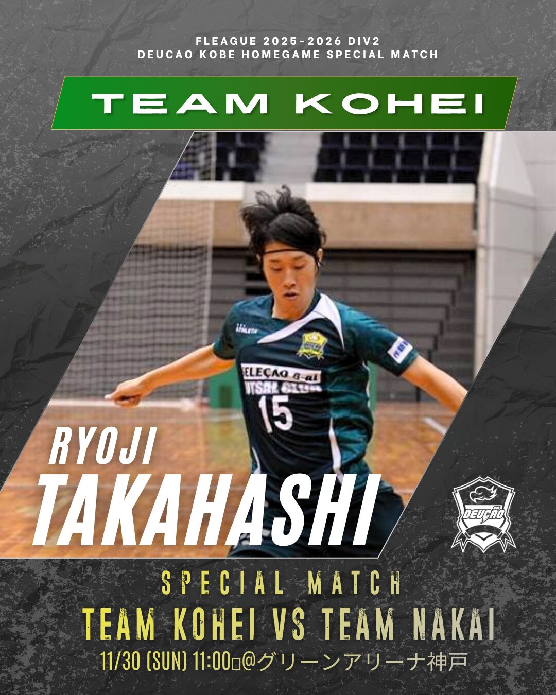 11月30日(日)デウソン神戸のメットライフ生命Fリーグ2025-26Div2「デウソン神戸vsエスポラーダ北海道」の試合前イベントとして、 スペシャルマッチ「チーム原田浩平×チーム中井健介」を開催いたします。