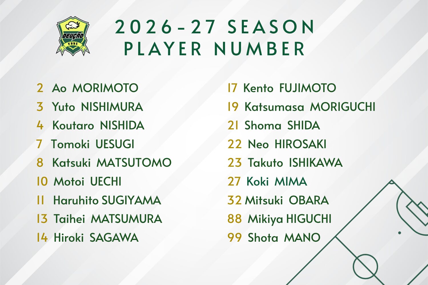 この度、2026-27シーズンを戦う選手の背番号が決定いたしましたので、お知らせいたします。