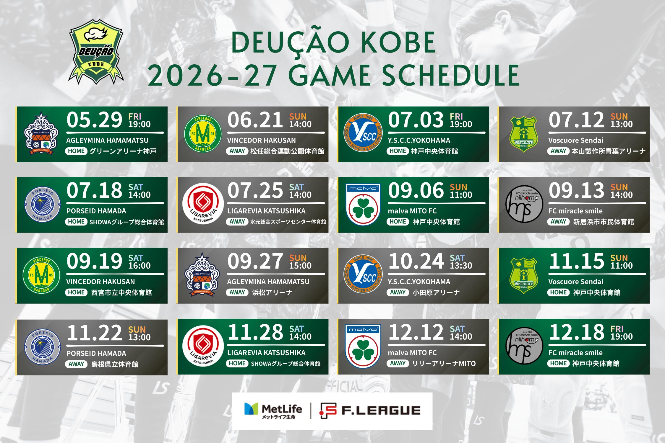メットライフ生命 Fリーグ2026-27 Div2の試合日程が確定しましたのでお知らせいたします。