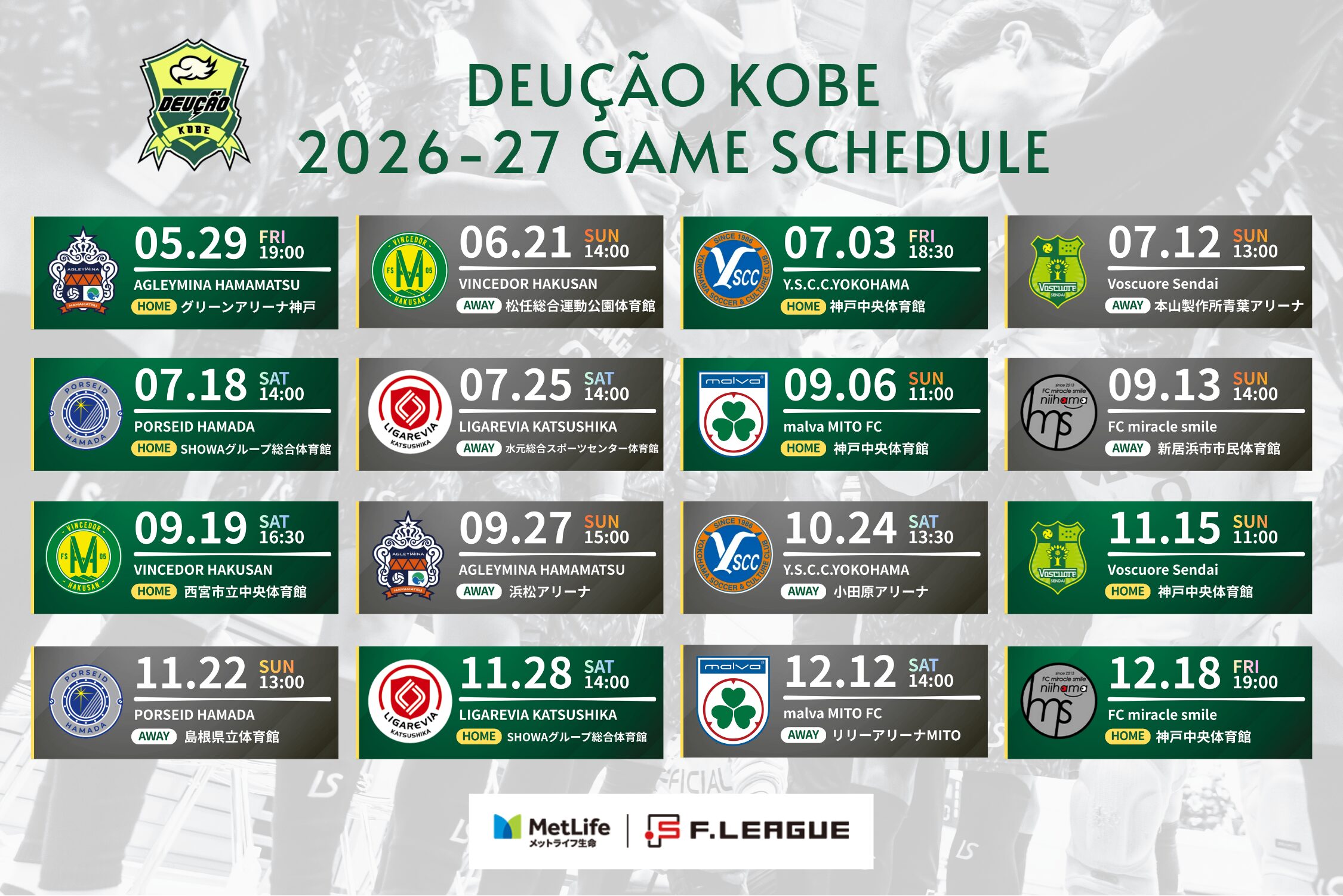 【キックオフ時間変更のお知らせ】メットライフ生命 Fリーグ2026-27Div2 第4節&第12節