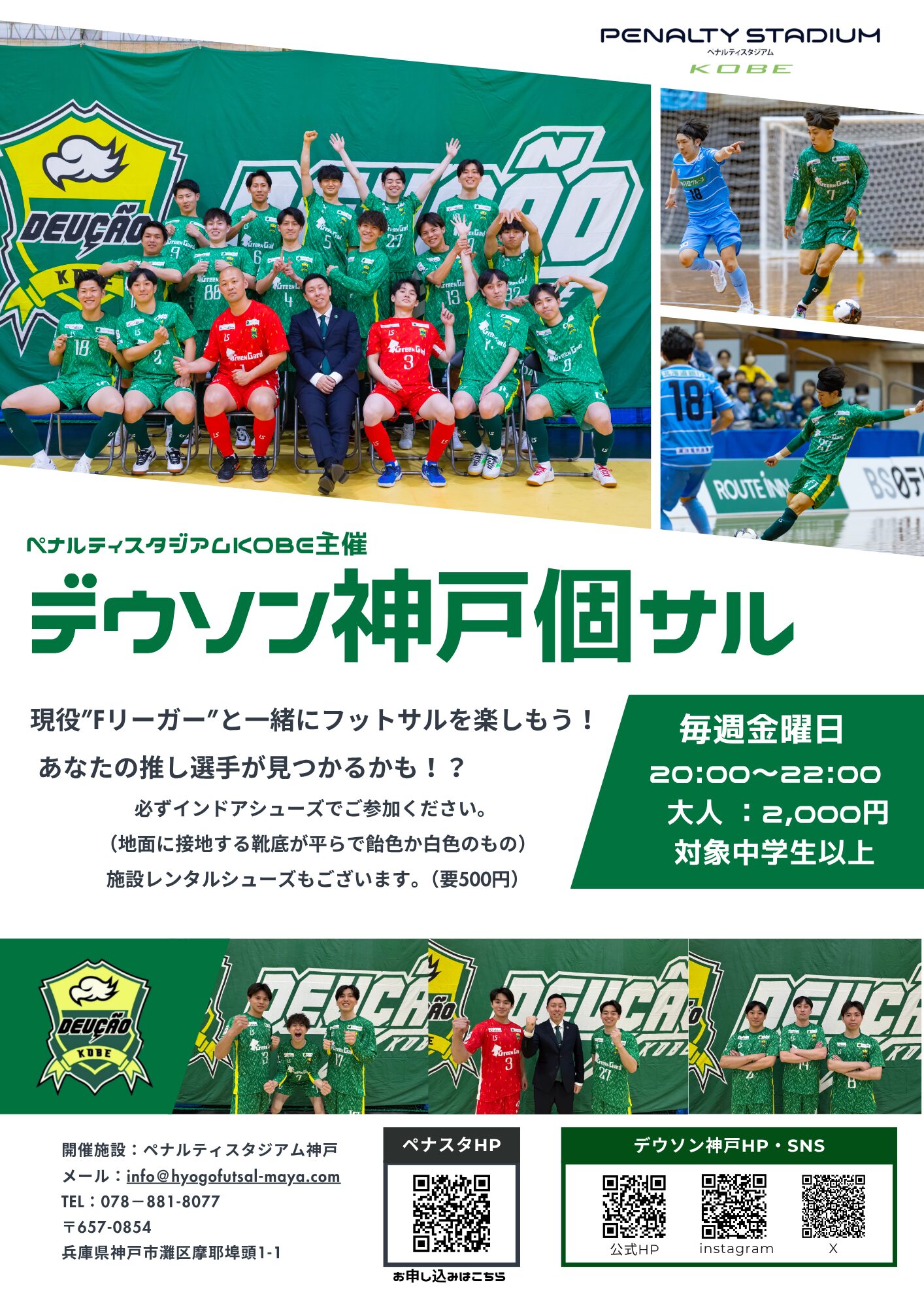 この度、デウソン神戸個サルをペナルティスタジアムKOBEで定期開催することになりましたのでお知らせいたします。